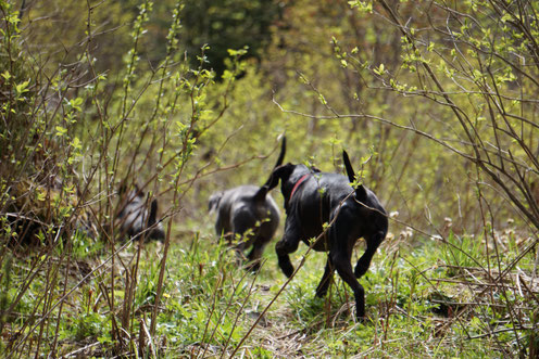Durch intensives, konsequentes Training wird auf einen Freilauf der jagdlich passionierten Hunde hin gearbeitet. Wir üben den Hund zu lesen und versuchen ihn innerhalb seiner jagdlichen Motivation zu beeinflussen, so dass der Hund mit seiner Aufmerksamkeit bei seinem Menschen bleibt und weiter mit ihm kooperiert.